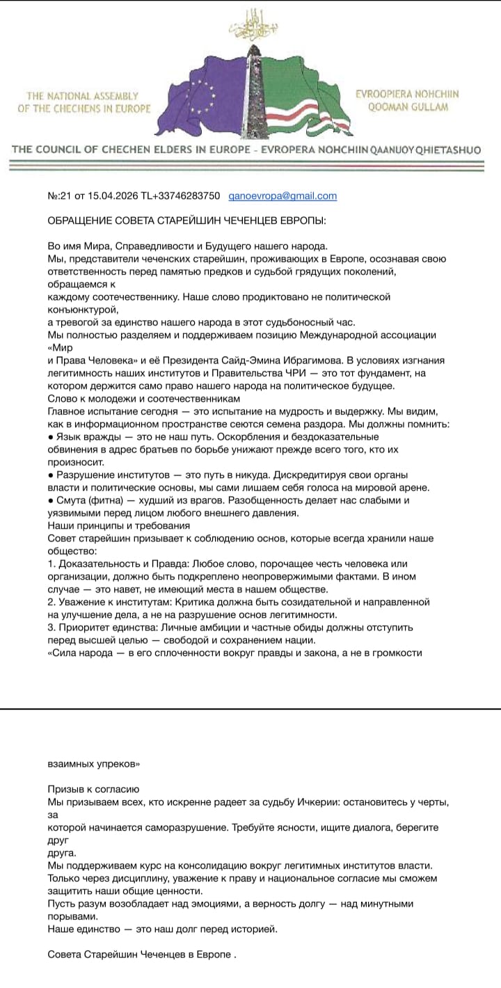 Обращение Совета старейшин чеченцев Европы