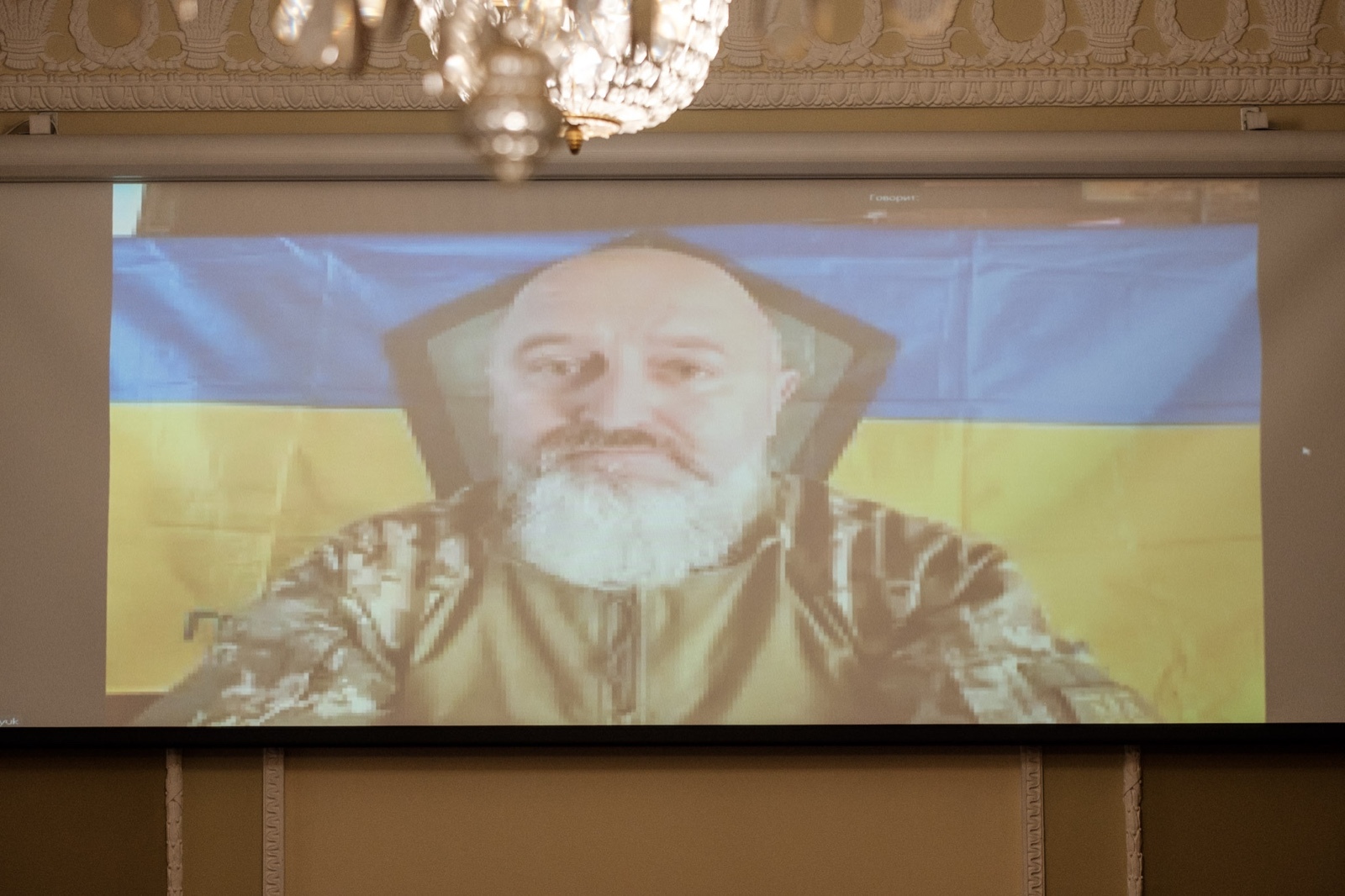 Через прямое включение с фронта выступил Юрий Сиротюк (позывной: «Мамай») – директор негосударственного аналитического центра «Украинские студии стратегических исследований», народный депутат Украины 7 созыва, участник комбатантского объединения «Легион Свободы», после 24 февраля 2022 года – боец 5-го штурмового полка ЗСУ.